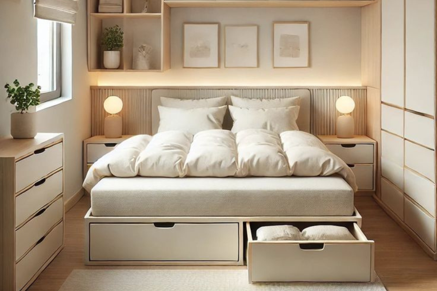 - Camas con cajoneras inferiores. Aprovechan el espacio bajo la cama para guardar ropa o sábanas.