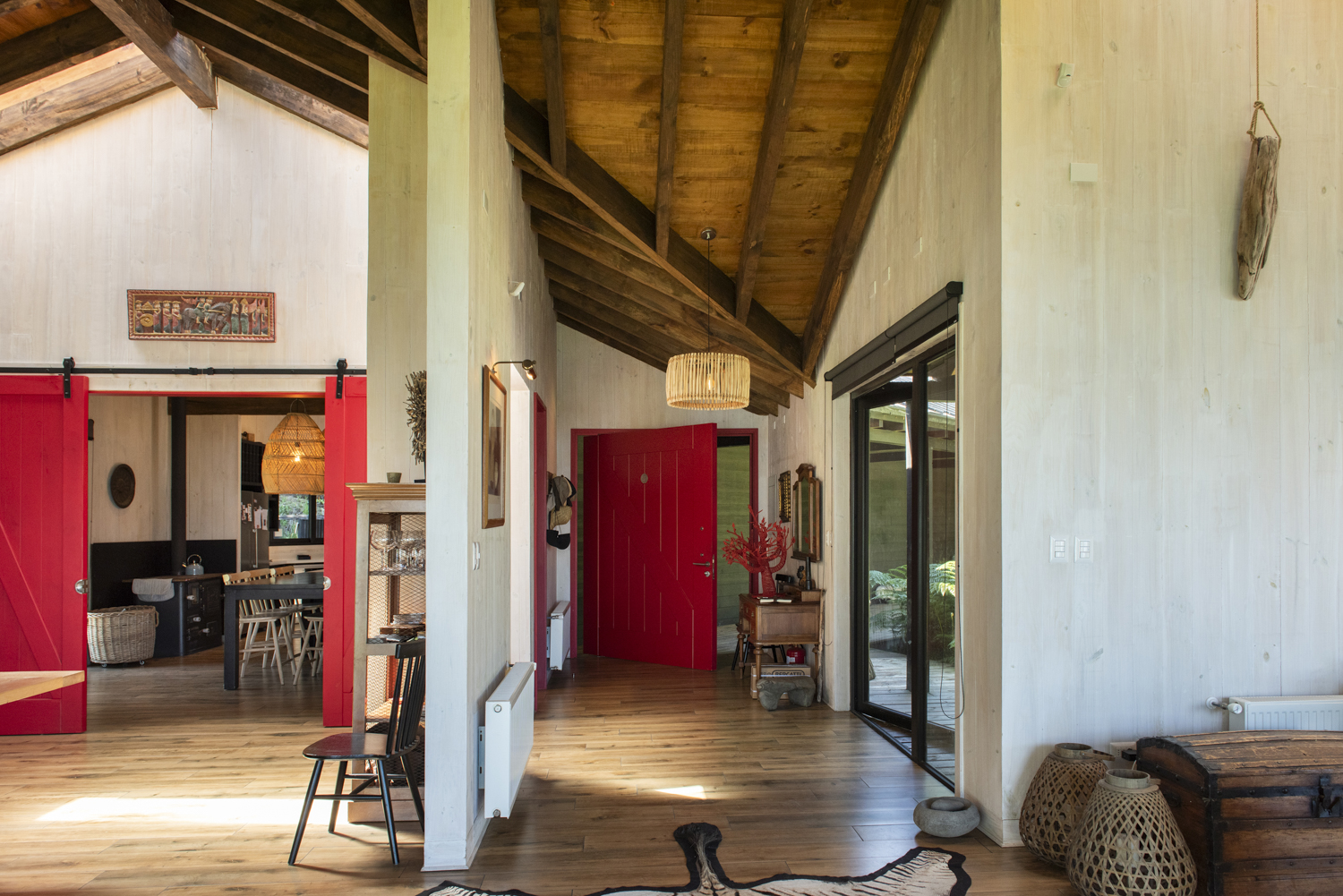 Diseñar una casa en un terreno muy angosto entre el lago y el cerro. Este proyecto implicó resolver cuidadosamente los movimientos de tierra, ya que no eran menores, y plantear una estructura segura y funcional a solo metros de la orilla del lago, enfrentando desafíos técnicos significativos. El diseño está pensado para una familia numerosa que disfruta recibir amigos y parientes, logrando espacios amplios y acogedores. Un aspecto clave fue maximizar la entrada de luz natural, especialmente considerando que el norte queda a espaldas de la casa. Esto se logró con ventanas estratégicas en la cubierta, un elemento innovador definido en conjunto con los propietarios, que hace de esta casa un espacio cálido y lleno de vida.