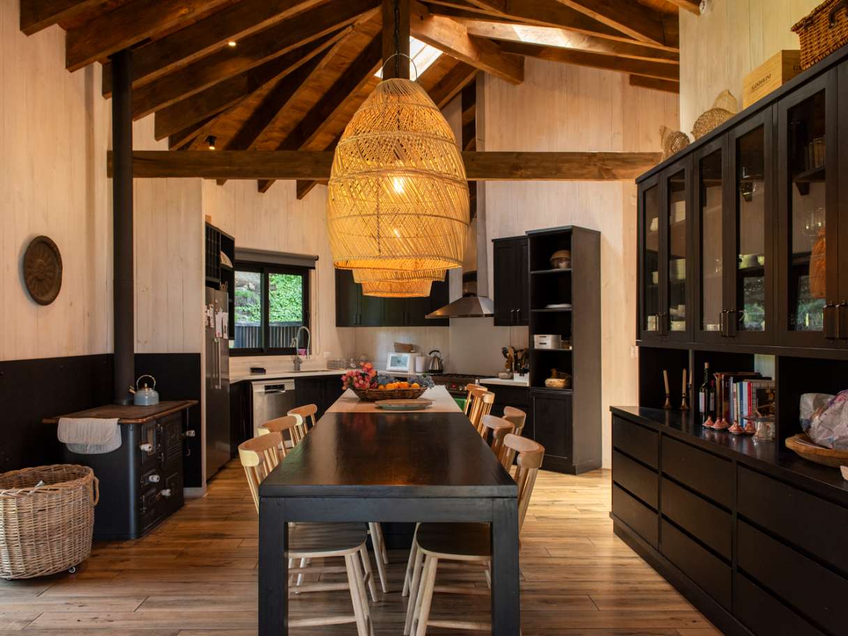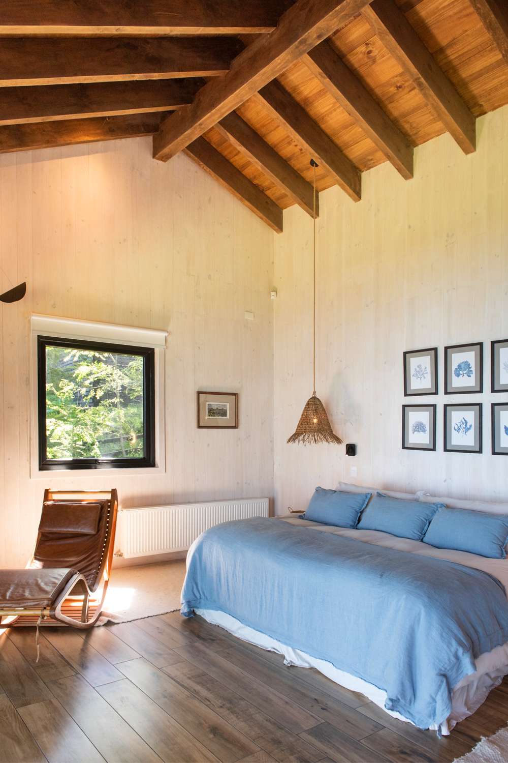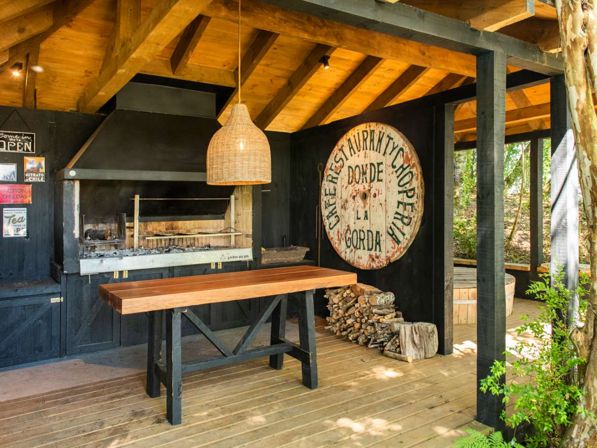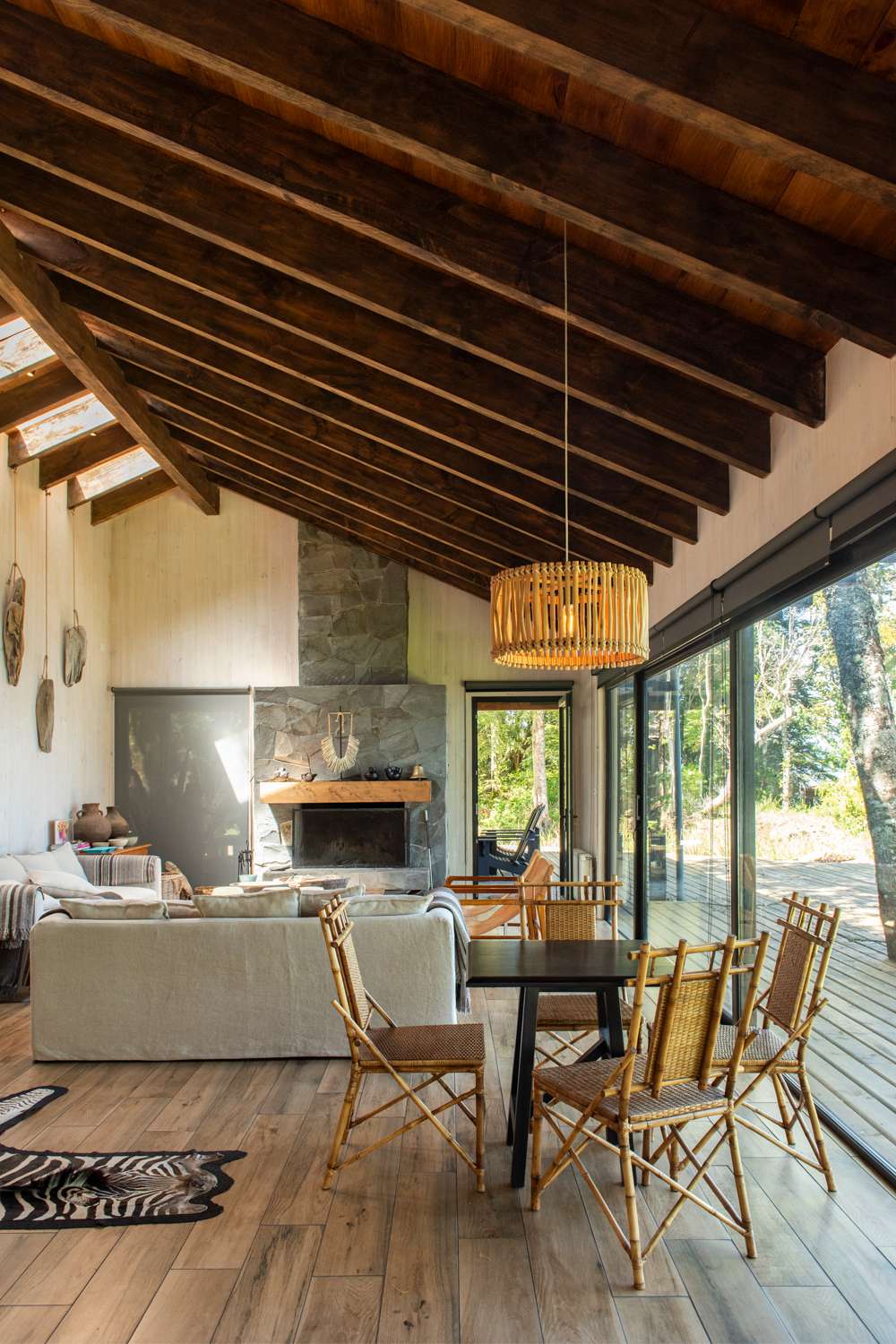 Estructura de muros de madera de pino impregnado (excepto en chimeneas y cocina a leña).