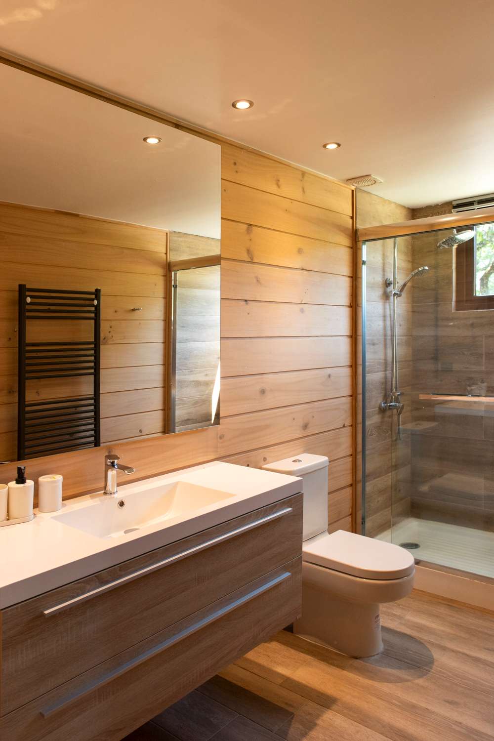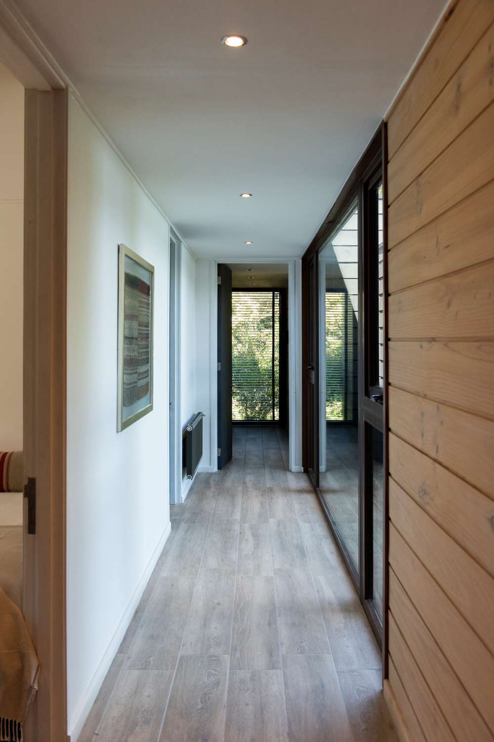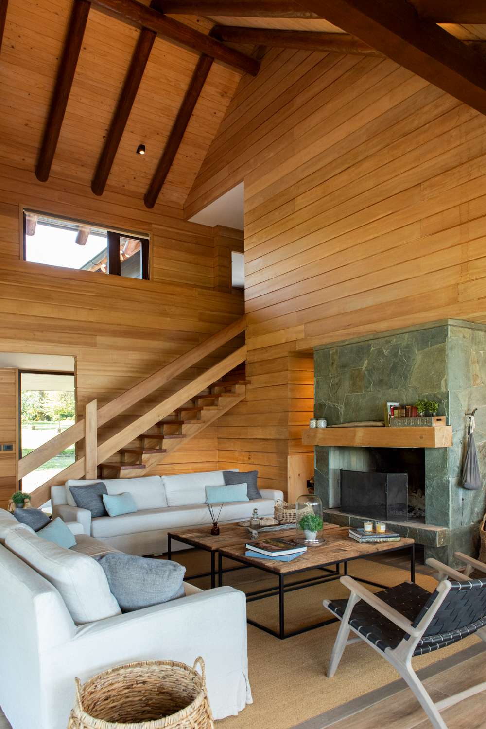 Materiales utilizados: • Madera de planes de manejo aprobados por Conaf • Revestimiento de madera de pino IPV • Piedra en muros clave • Cubierta de tejuela asfáltica reforzada, ideal para resistir los fuertes vientos de la zona